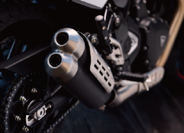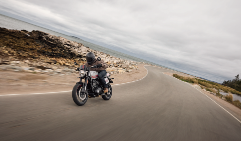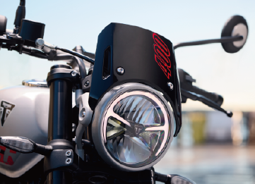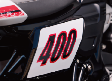 以賽道平地競速車為藍本,加入號碼板風格面罩、寬把與肌肉油箱,展現獨有的粗獷美感
